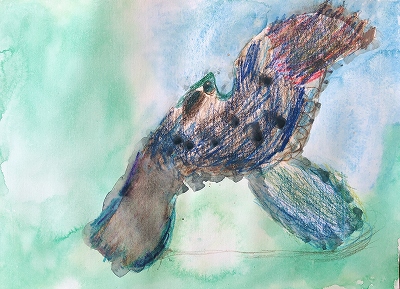 背景は水彩で、鳥は水彩色鉛筆で描いてくれました。