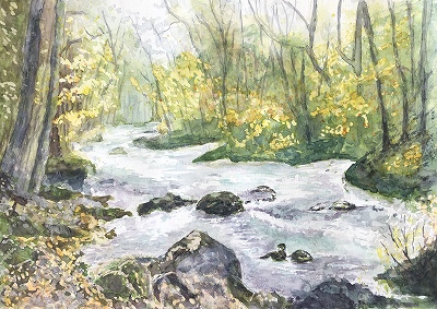 ウェットインウェットで滲みを上手くいかせています。風景では奥行きがとにかく大事ですが