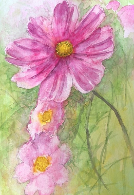 本当に水彩の難しいところです。しかし遠くの光の当たっているバラが何とも爽やかに