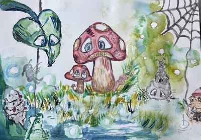 背景は描写するというよりは自由に、どちらかというとにじみ重視で描いていただき