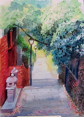 京都、二条城前水彩画教室紫水庵ではみなさん描きたいものにあわせてサポートしております。