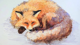 スピード着彩で冬の参考作品「キツネ」を描きました。