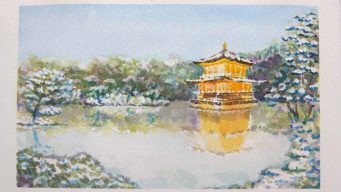 水彩+ホワイトを使って描く京都の雪景色